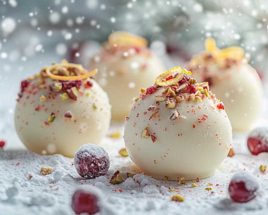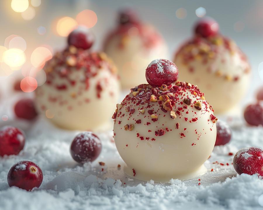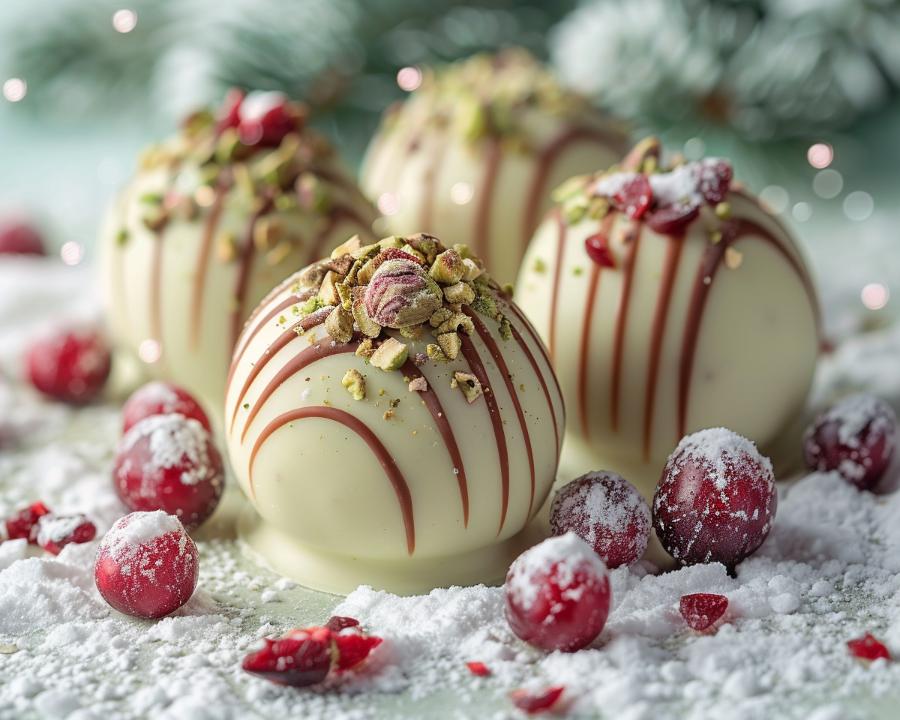 These Truffles are pretty candy balls that look like tiny snowballs with red and green sparkles inside that you don’t have to bake. They’re made by mixing melted white chocolate with chopped dried cranberries and pistachios. You just chill the mixture, roll it into small balls, and then cover them with more white chocolate or powdered sugar. Upon biting you get creamy chocolate, tart cranberry, and salty nut crunch all at the same time. They’re super easy to make and they look fancy on a Christmas plate. Also, people love getting them as gifts.