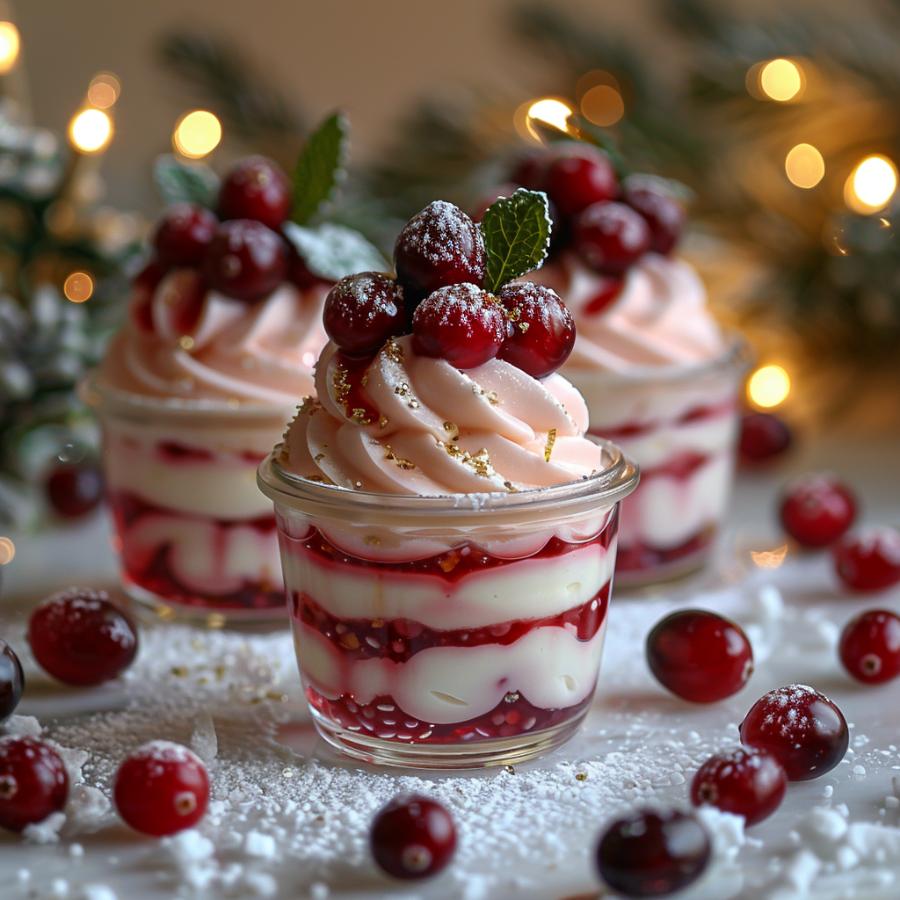 Each little cup has about 10–12 grams of protein from the yogurt, only 8–12 grams of natural sugar (way less than a candy bar’s 30+ grams), and around 150 calories total – that’s like a snack, not a cheat. Carbs are low because there’s no flour or crust, mostly from the fruit. You get healthy fats if you use full-fat yogurt, plus antioxidants from the red cranberries that protect your body in many ways. Macros are roughly 40% protein, 40% carbs from fruit, 20% fat – way better balance than most holiday desserts that are 80% sugar and flour.